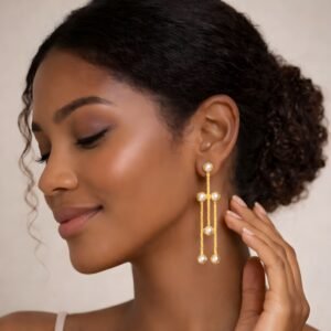 Golden Trinity Pearl Dangler Earrings